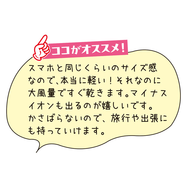 超小型×超軽量×大風量。一般的なドライヤーの約半分の大きさ。
